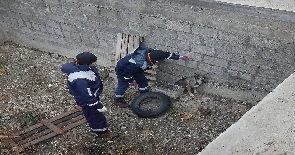 В Отрадненском районе сотрудники «Кубань-СПАС» вытащили провалившуюся в строительный котлован собаку.