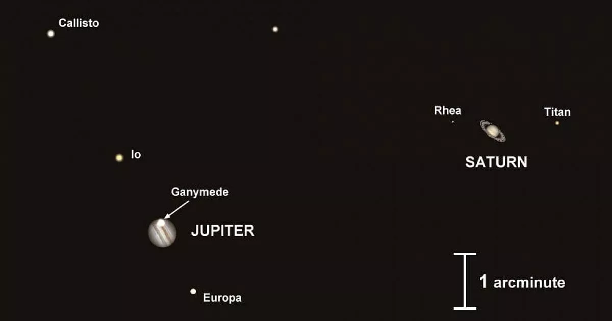 После захода солнца 21 декабря Юпитер и Сатурн подойдут друг к другу на минимальное расстояние, рассчитали астрономы из Университета.