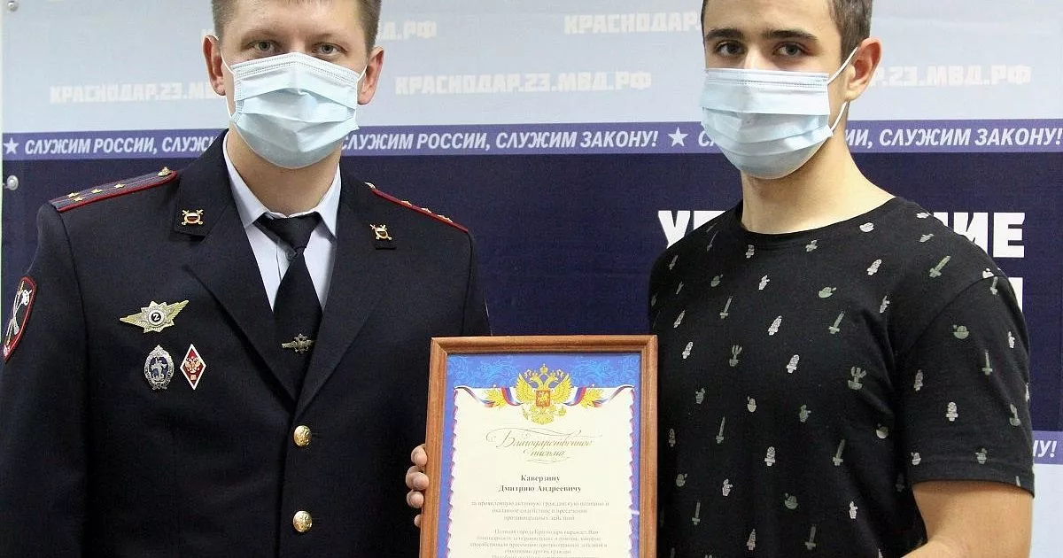 В Краснодаре за содействие в пресечении противоправных действий благодарственным письмом полиции отмечен несовершеннолетний.
