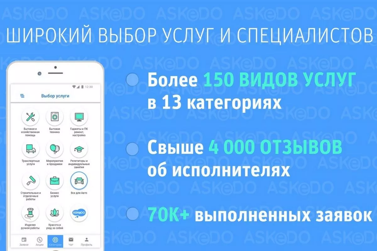 – Всего на сервисе представлено более 150 видов различных работ доступных для заказа. Наиболее востребованы специалисты, связанные с бытовой тематикой: сантехники, электрики, мастера по ремонту бытовой техники, отделочники и т.д. Все специальности в ASKeDO разделены на «категории», в которых мы собрали схожие по сути профессии. Если понадобится электрик – вы найдете его в категории «помощь в быту», а найти специалиста по «аквагримм» сможете в категории «мероприятия и праздники». Такая иерархия появилась не сама по себе, а после изучения рынка, его потребностей и уже имеющихся наработок. С полным перечнем доступных для заказа услуг можно ознакомиться на нашем сайте ASKeDO или в мобильном приложении для Android и IOS.