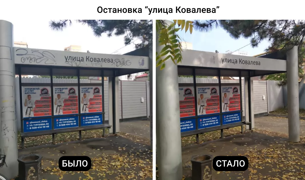 Незаконные граффити и рекламные объявления счищают с остановочных павильонов, дорожных знаков, железобетонных и металлических опор.