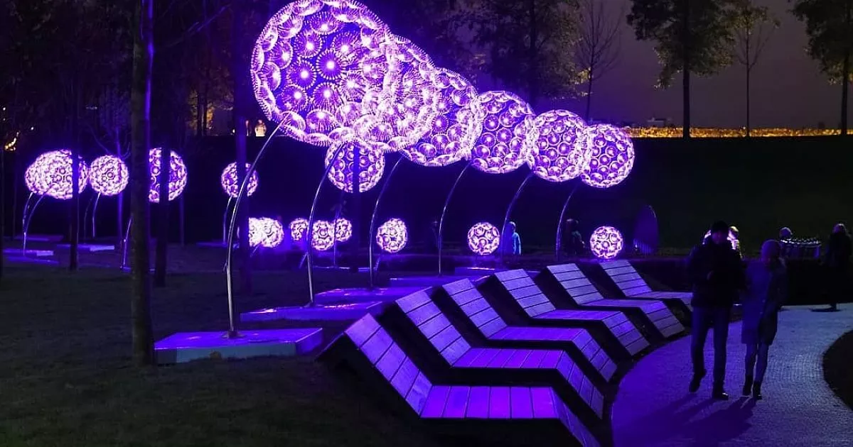 В районе музыкального лабиринта «выросли» огромные одуванчики. Высота некоторых объектов превышает человеческий рост. Головки одуванчиков светятся в темное время суток.