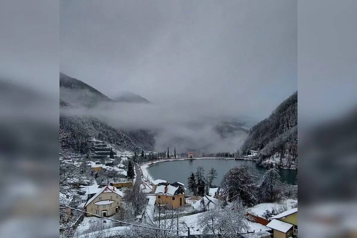 Накануне осадки выпали и в сочинской Красной Поляне. Снег прошел вечером, а утром жители поделились фотографиями и видео заснеженных гор.