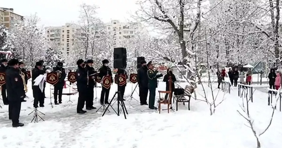 Под окнами Николая Яшкина военный оркестр Росгвардии исполнил его любимые фронтовые мелодии и песни.