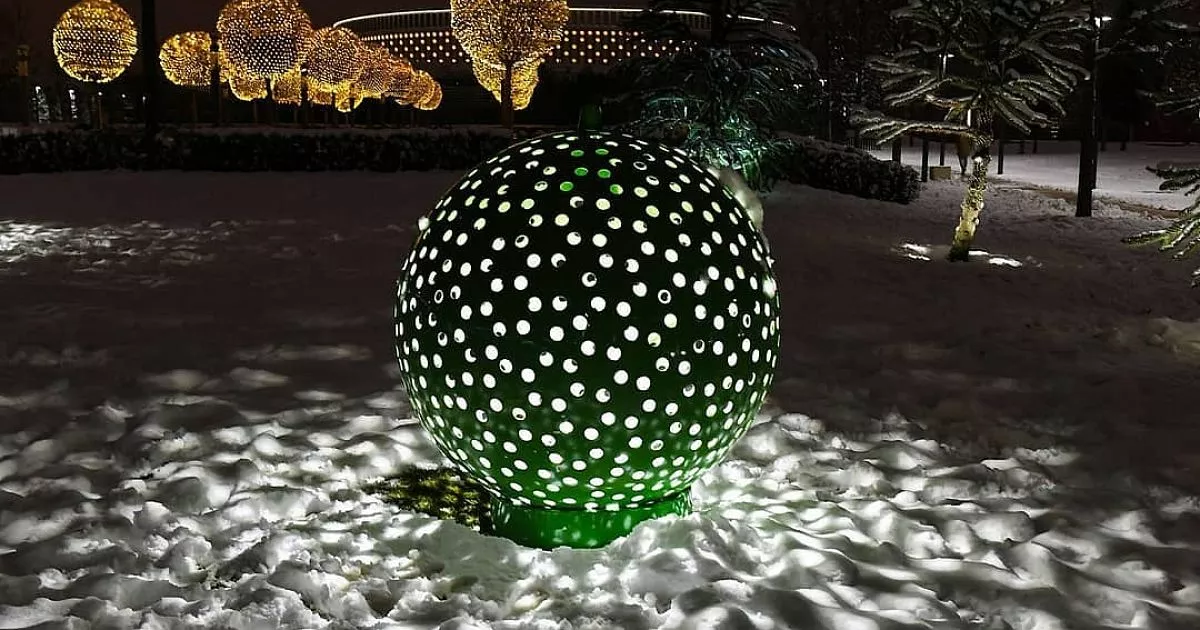 Деревья, расположенные в парке, украсили гирляндами, а фасад стадиона – снежинками. Также в этом году появились новые объекты. На том месте, где в течение лета цвел шалфей, специалисты «высадили» искусственные цветы. Теперь в вечернее время на аллее можно наблюдать сотни сиреневых огней.