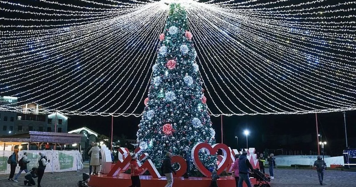 Главная елка курорта высотой 23,5 метра установлена на площади Флага. Она была выполнена по специальному заказу и стала одной из самых высоких в регионе. Новогодний атрибут состоит из ста тысяч светодиодных лампочек, а украшают его не только привычные игрушки, но и уникальные элементы декора, отражающие природу Черноморского побережья. Например, на ней можно увидеть стилизованные магнолии.