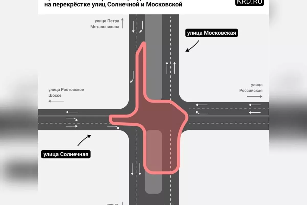 Проехать с улицы Солнечной на Московскую можно будет, только повернув направо, при движении с обоих направлений. С улицы Московской на Солнечную повернуть можно при движении со стороны ул. им. Петра Метальникова, сообщает пресс-служба городской администрации.