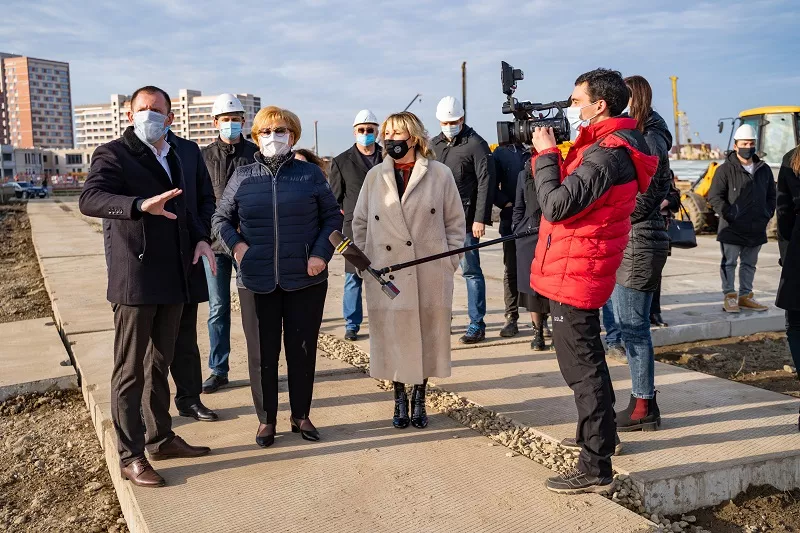 В рамках депутатского контроля за возведением социальных объектов ход строительства проинспектировали председатель городской Думы Краснодара Вера Галушко и депутат одномандатного избирательного округа № 16 Галина Качура. Экскурсию по территории микрорайона провел первый заместитель председателя правления СК «ЮгСтройИмпериал» Станислав Николенко.