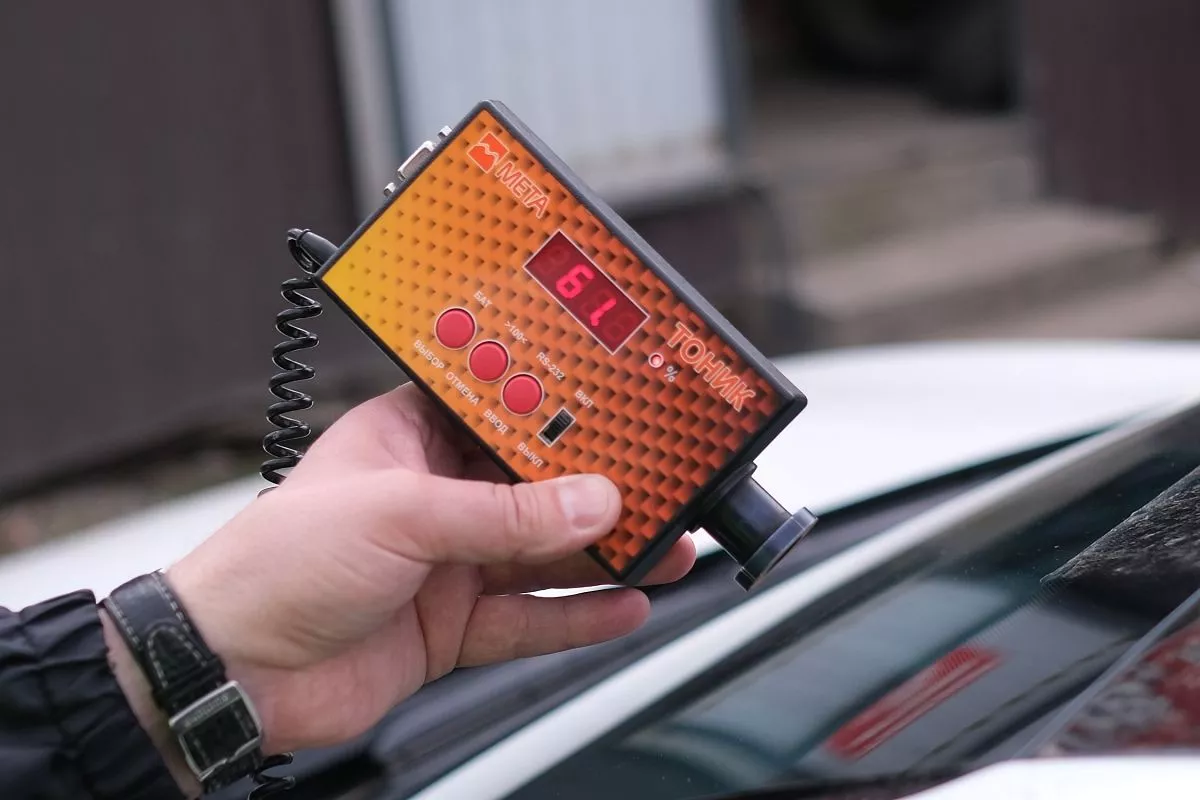 Сотрудники Госавтоинспекции останавливают на дорогах Краснодара тонированные автомобили и проводят замер светопропускания стекол. Если этот параметр не соответствует требованиям технического регламента, водителя штрафуют на 500 рублей.