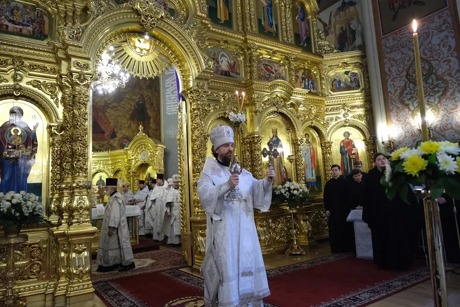 Первую литургию 24 апреля провел митрополит Екатеринодарский и Кубанский Григорий в Екатерининском кафедральном соборе.