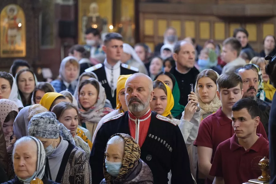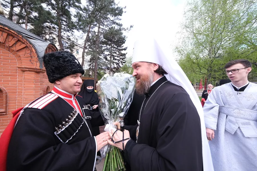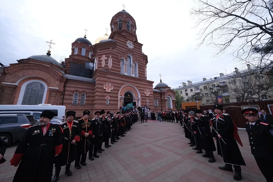 Первую литургию провел митрополит Екатеринодарский и Кубанский Григорий в Екатерининском кафедральном соборе 24 апреля. Перед началом богослужения он обратился к казакам.