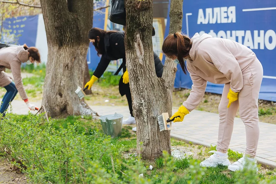 Участники субботника с энтузиазмом брались за работу: белили стволы, окучивали деревья, высаживали розы – скоро они зацветут на одной из аллей «Губернского». Приняли участие в субботнике и сотрудники группы компаний «ЮгСтройИнвест».