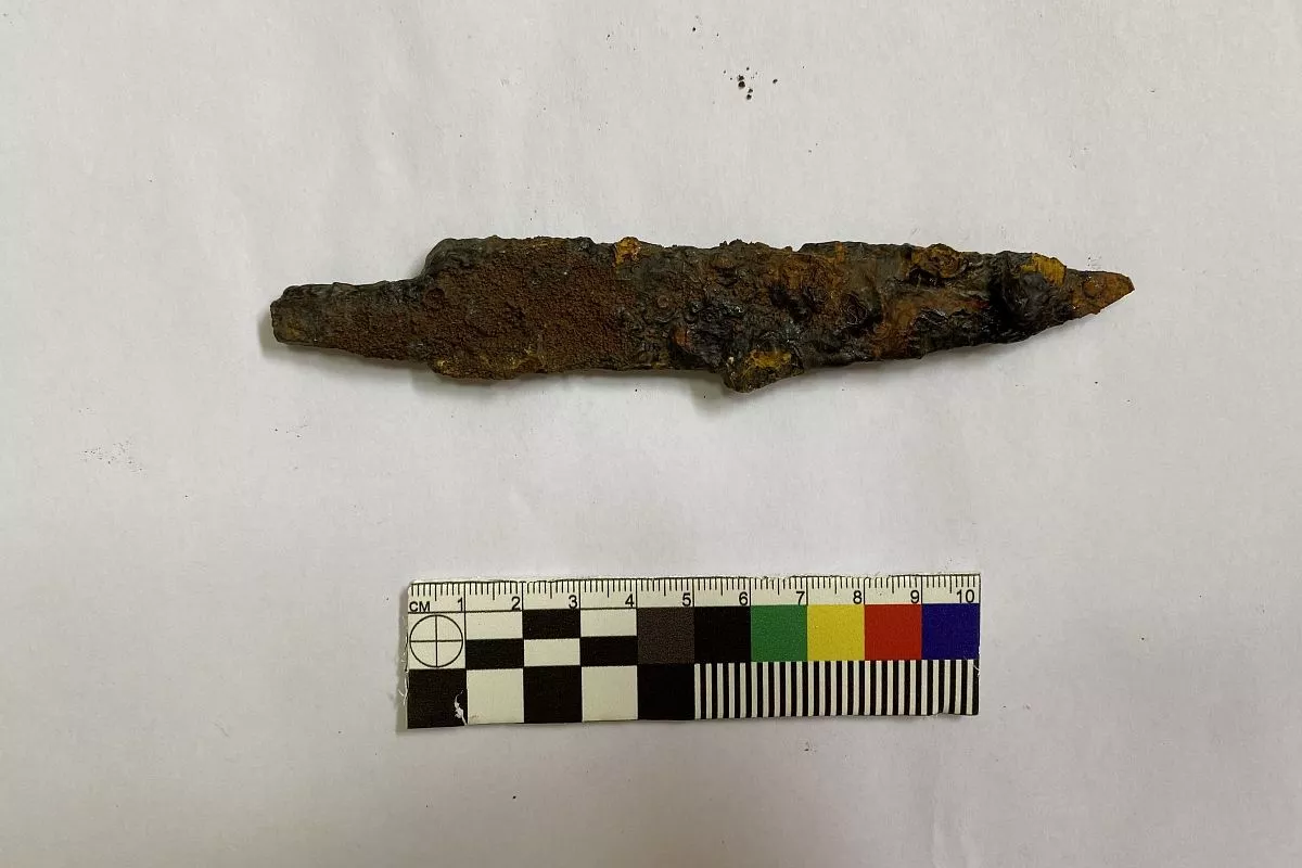 При обработке полученных данных геофизики зафиксировали неизвестные малоразмерные магнитные аномалии. В одном из таких мест археологи нашли второе кремационное погребение средневекового война.