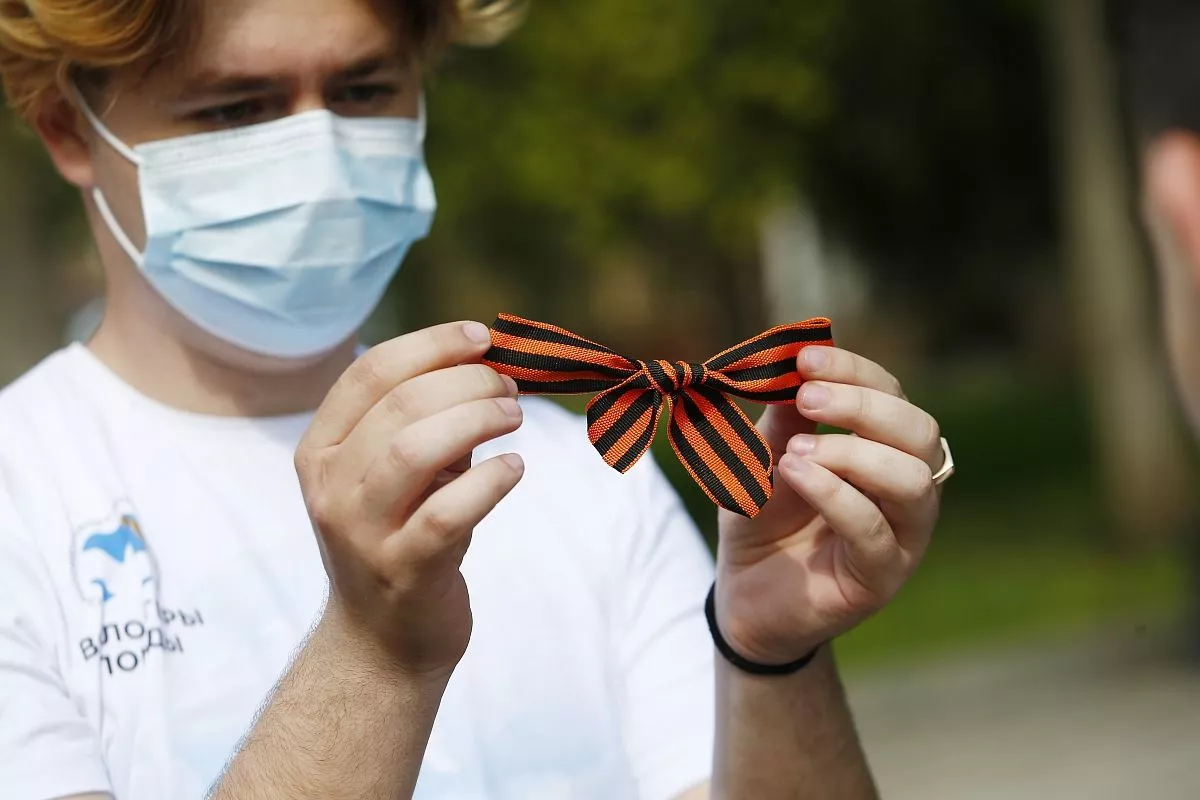 В нынешнем году патриотическая акция, которая началась 27 апреля и продолжится до 9 мая, проходит в традиционном формате с соблюдением всех санитарно-эпидемиологических мер. Волонтеры уже успели раздать сотни Георгиевских лент.