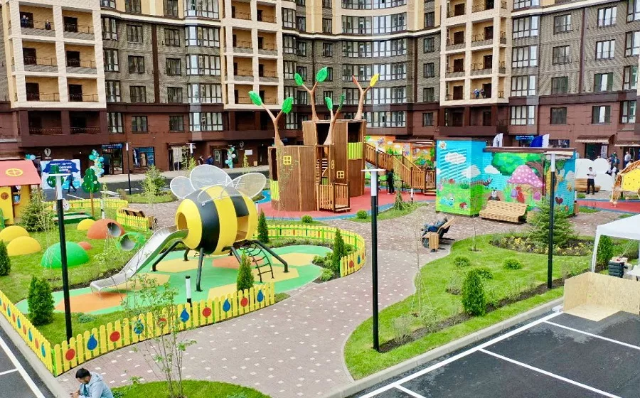 Возведение семейного квартала «Достояние» началось летом прошлого года. Флагманский проект «ЮгСтройИнвест» произвел фурор уже на старте. В отделе продаж была очередь из желающих приобрести квадратные метры. Тогда за два первых дня был поставлен абсолютный рекорд продаж – реализовано около 300 квартир. Как заявляют эксперты рынка, интерес к микрорайону сегодня вырос еще больше и продолжает расти. Современное, продуманное до мелочей благоустройство, новые фасадные решения, панорамное остекление, французские окна, шикарные дизайнерские интерьеры холлов, бесшумные лифты и, конечно, качественная предчистовая отделка квартир.