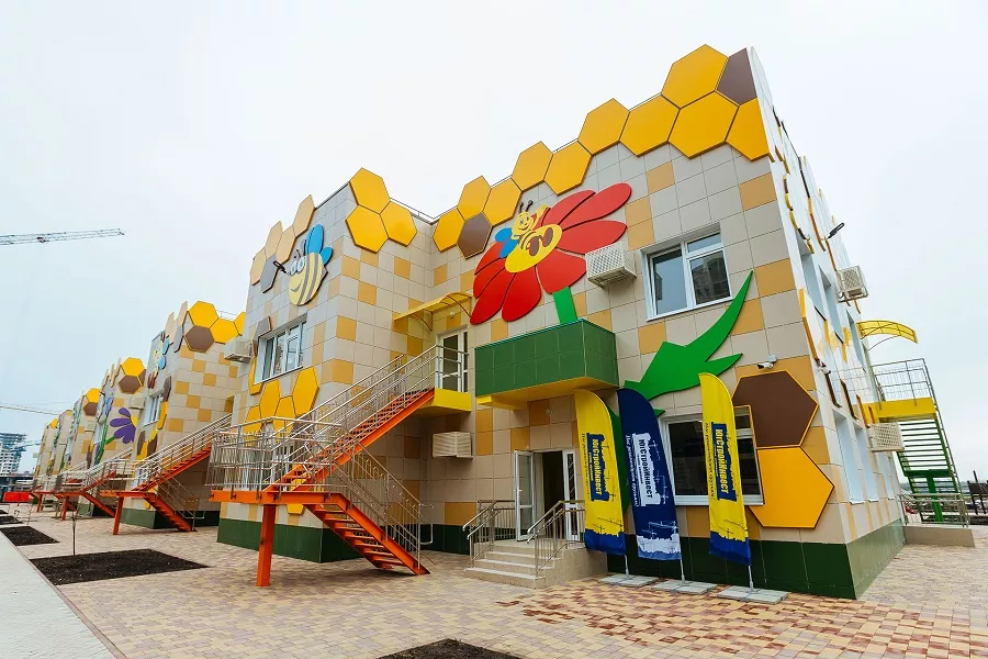 Детсад «Пчёлка» находится на территории семейного квартала «Достояние», напротив 1 литера с подземным паркингом, который был сдан в минувшую субботу. Социальный объект – первый в семейном квартале. Рядом будет современная школа на 1550 мест, строительство которой планируют начать до конца года, а также еще два детских сада на 300 мест каждый.