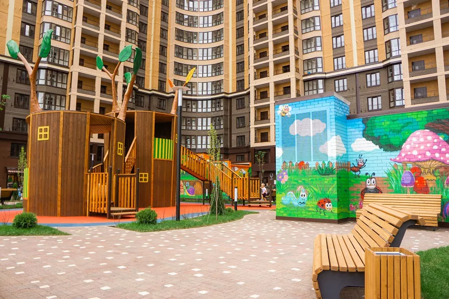 У каждой группы, рассчитанной на 18-20 воспитанников, будет своя игровая площадка с теневыми навесами площадью 40 кв. м. Все игровые комнаты и спальни оснащены ультрафиолетовыми облучателями для обеззараживания воздуха. По периметру и внутри детского сада установлена система видеонаблюдения.