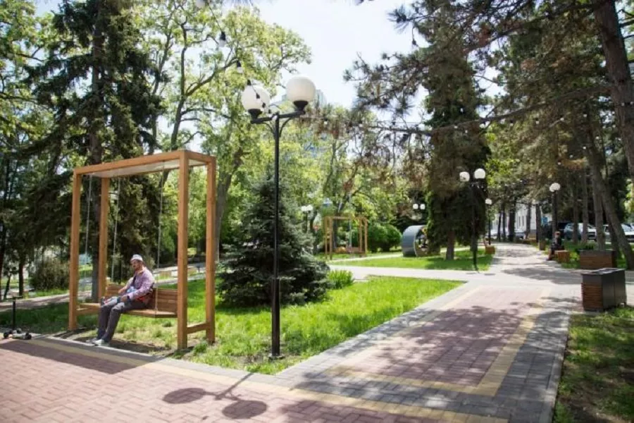 Как сообщили в пресс-службе администрации Анапы, просторную зону отдыха освободили от торговых точек и благоустроили в экостиле. Вся инфраструктура выполнена преимущественно из дерева. Установлены дизайнерские скамейки с навесами, лавочки, качели, урны для раздельного сбора мусора.