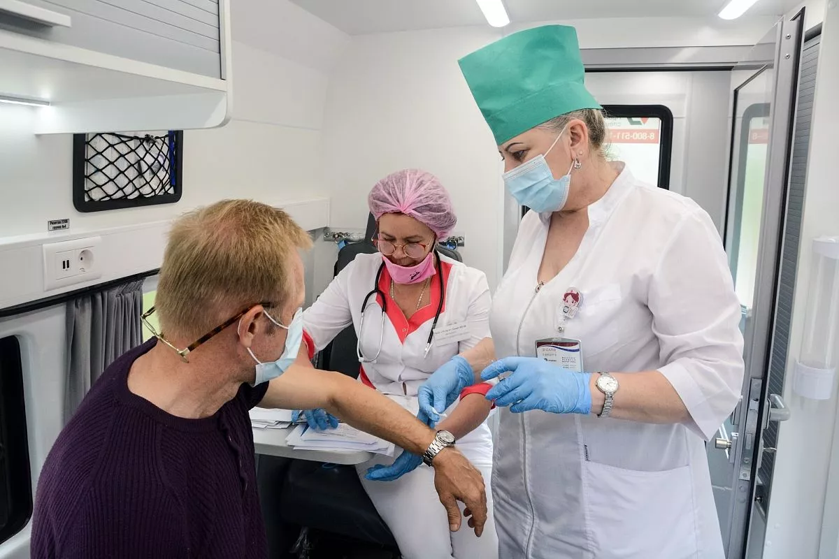 Мобильный комплекс провел вакцинацию от COVID-19 сотрудников санатория «Белые ночи», расположенного в поселке Уч-Дере.