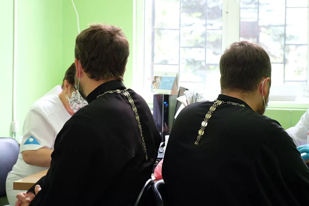 У прививочного кабинета своей очереди на инъекцию ждали священнослужители Екатеринодарской епархии. Батюшки решили присоединиться к масштабной кампании по вакцинации, которая сегодня развернута по всей России, в том числе в Краснодарском крае.