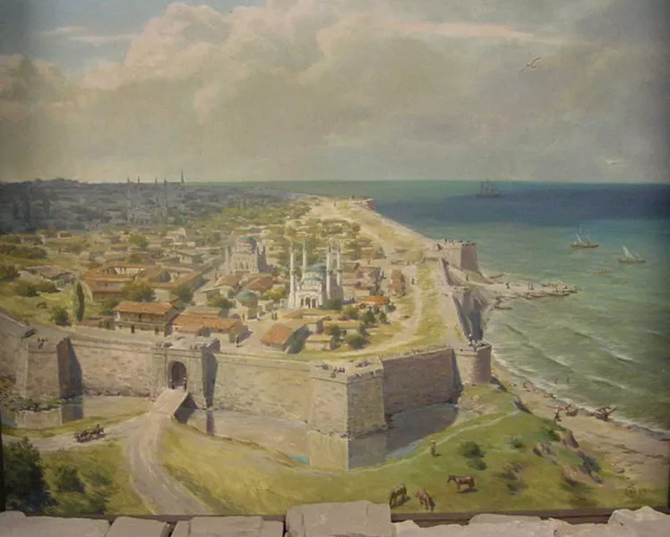 «Русские ворота» возвели в 1782-1783 годах. Крепость имела мощные стены, бастионы и ворота, снаружи была окружена глубоким рвом и валом. Внутри крепости располагались постоялый двор, магазины, базар, казармы, мечети, бани, библиотека, многочисленные лавки и кофейни, более 30 колодцев. Неоднократно за крепость велись сражения. В 1829 году она окончательно отошла Российской империи. Однако строения крепости в военных действиях были практически разрушены. Перед воротами в 1854 году на каменных постаментах установлены пушки.