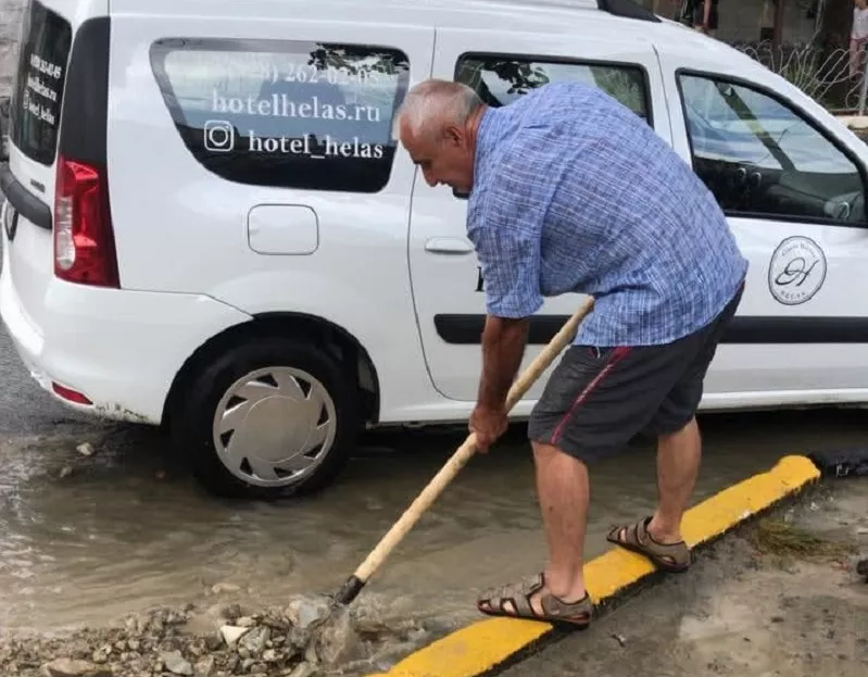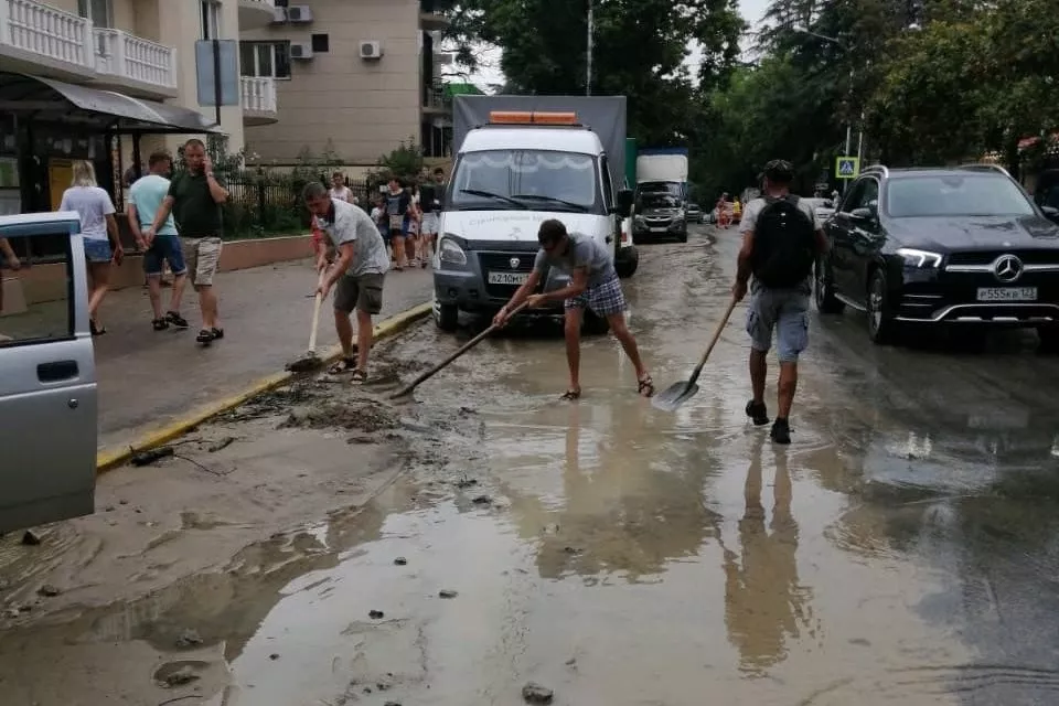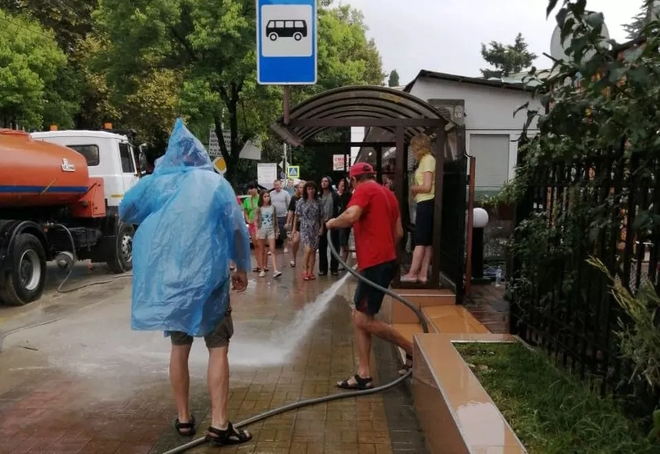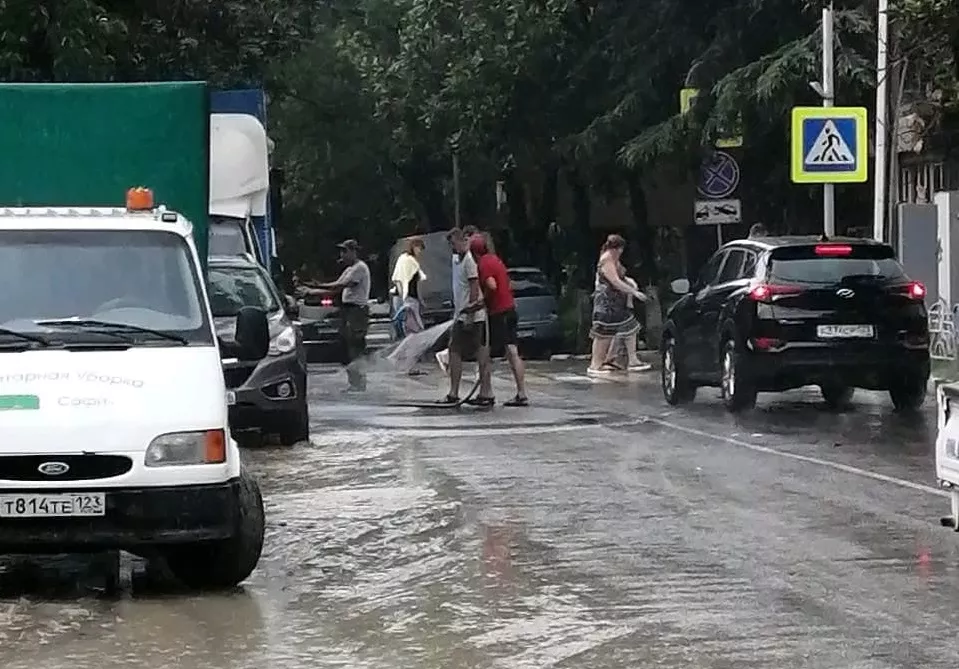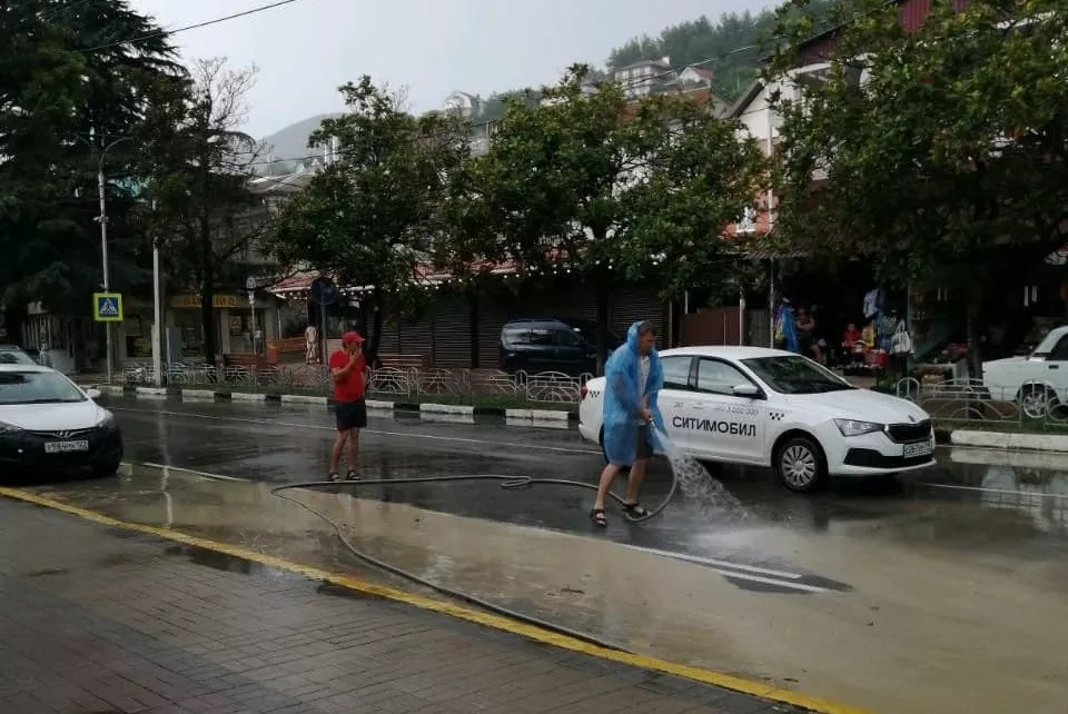 23 июля мощный ливень частично подтопил некоторые участки дорог в центре Лазаревского района курорта.