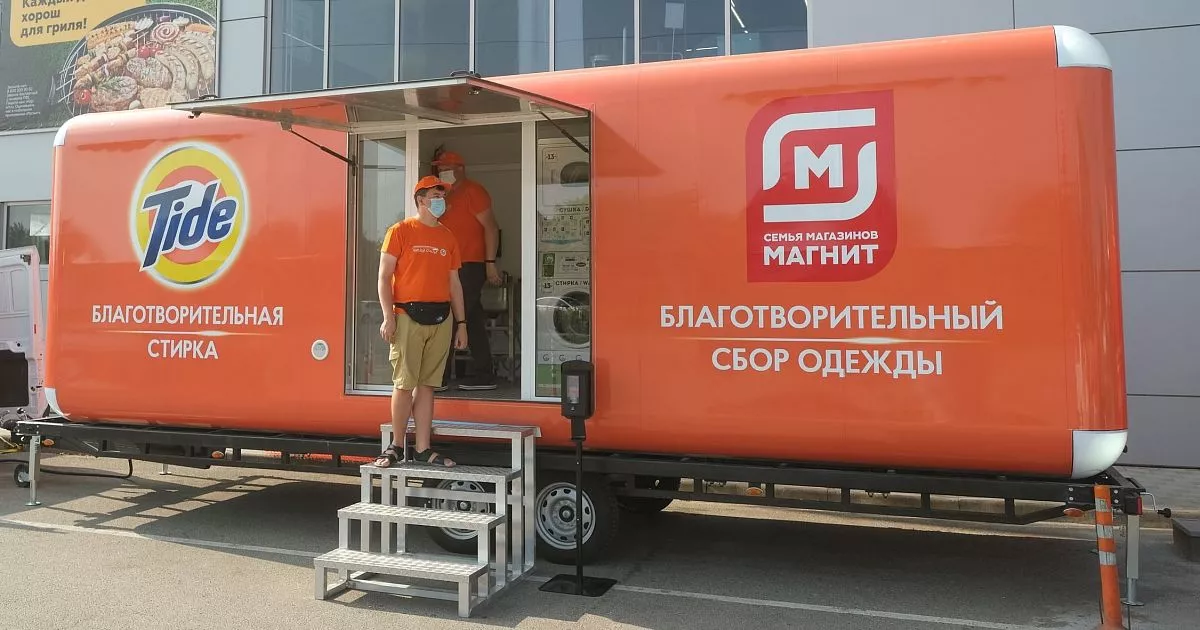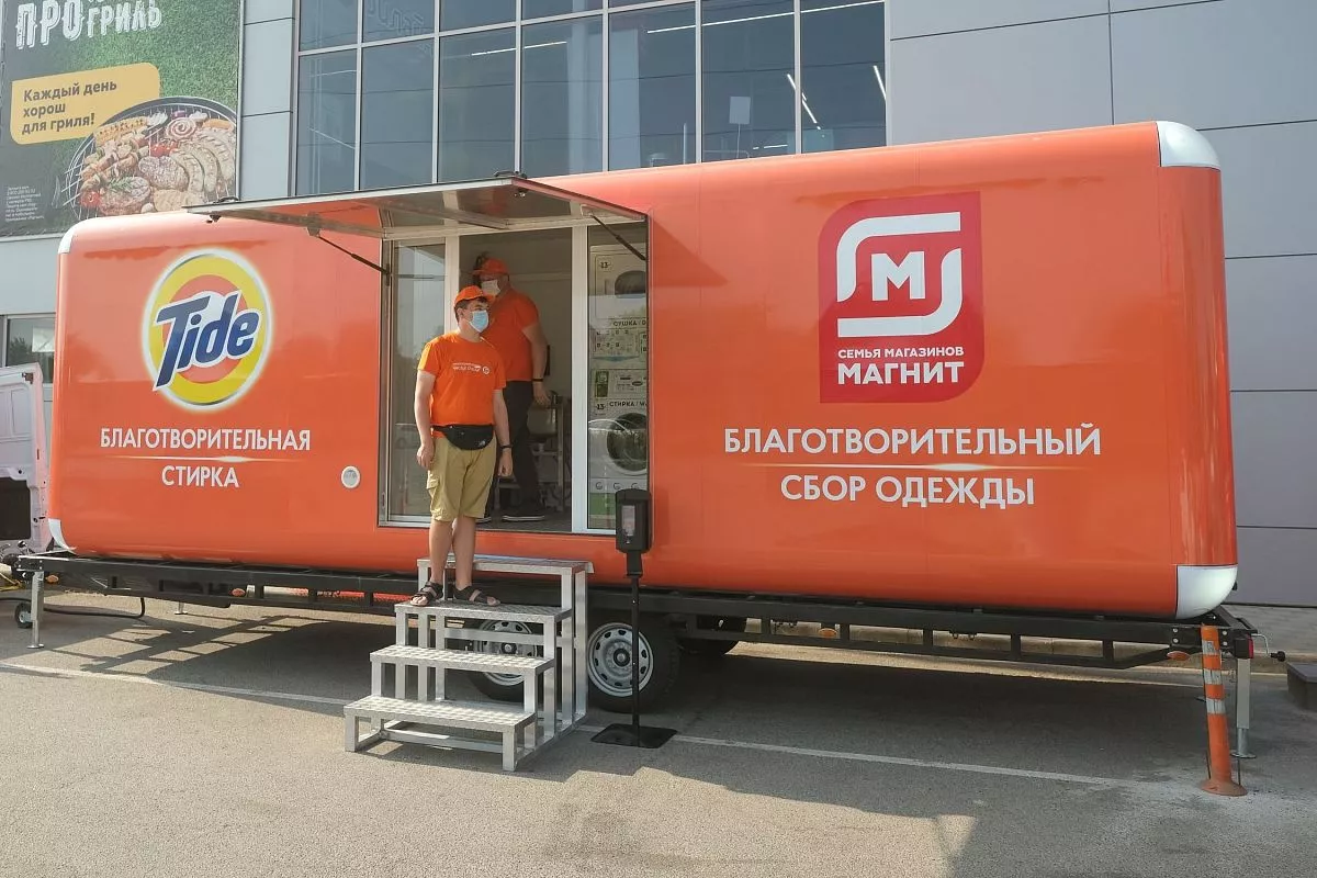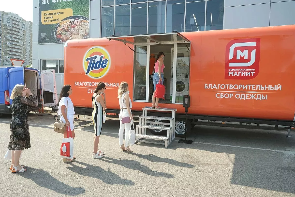Акция проходит в рамках благотворительной программы «Чистое счастье», которую проводят розничная сеть «Магнит» и бренд Tide компании Procter&Gamble. Ранее прачечная уже посетила Тулу, Воронеж и Ростов-на-Дону, а после Краснодара проследует в Ставрополь, Волгоград и завершит сбор одежды в Казани, сообщают организаторы акции.