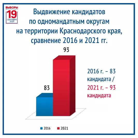 Больше всего претендентов выдвинулось по Краснодарскому избирательному округу № 46 – 16 человек и Сочинскому № 50 – 14 человек. Но и в других соперников немало. Так, в Красноармейском округе № 47, Славянском № 48, Армавирском № 52 – по 10 человек, в Туапсиснком № 49 и Каневском № 53 – по 12 человек. Все это свидетельствует об активности политических партий, делегирующих своих представителей в российский парламент. И даже в самом небольшом по количеству кандидатов Тихрецком округе № 51 желающих побороться за один мандат – 9 человек.
