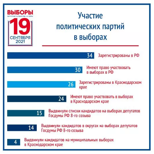 Алексей Черненко рассказал, что в крае имеют право участвовать в сентябрьских выборах 24 региональных отделения политических партий, но включились в предвыборную борьбу 15. Так, по всем восьми одномандатным избирательным округам выдвинули своих кандидатов не только парламентские партии («Единая Россия», ЛДПР, КПРФ и «Справедливая России – Патриоты – За правду»), но и «Гражданская платформа», «Новые люди», «Партия Роста», «Партия пенсионеров» и «Яблоко».