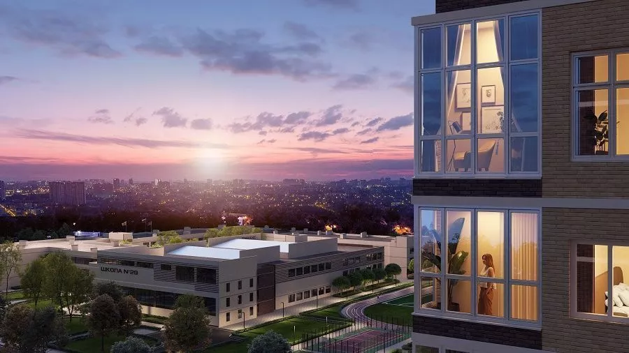 Из окна новых литеров открывается живописная панорама города и вид на новые социальные объекты. В микрорайоне расположатся три детских садика и самая большая в Южном федеральном округе школа на 1875 человек. Она откроет двери для юных учеников в 2022 году.