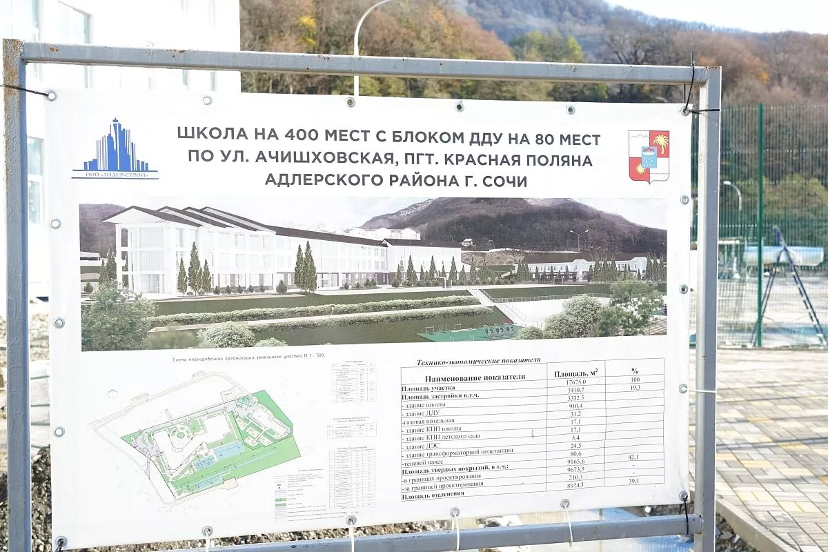 – После ввода в эксплуатацию школы и детского сада, которые сейчас строятся, проблема с дефицитом мест в образовательных учреждениях поселка будет решена. Все ученики Красной Поляны перейдут на учебу в одну смену, – рассказал по итогам поездки мэр курорта. – Параллельно со строительством ведется набор персонала.