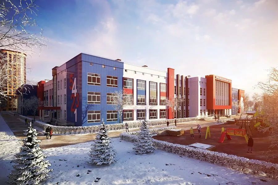 Трехэтажное здание будет рассчитано на 1550 учеников. У самых маленьких – с 1 по 4 класс – будет свой блок с отдельным входом, игровыми комнатами, кабинетами робототехники, иностранного языка и компьютерным классом. 45 предметных кабинетов для учеников постарше оснастят современным оборудованием. Столовая, актовый зал, театральная и танцевальная студии, библиотека, спортивные залы, помещения для кружков – предусмотрено все, чтобы ребятам было интересно учиться.