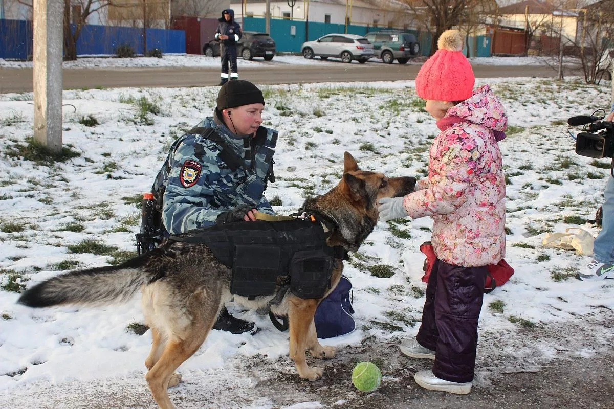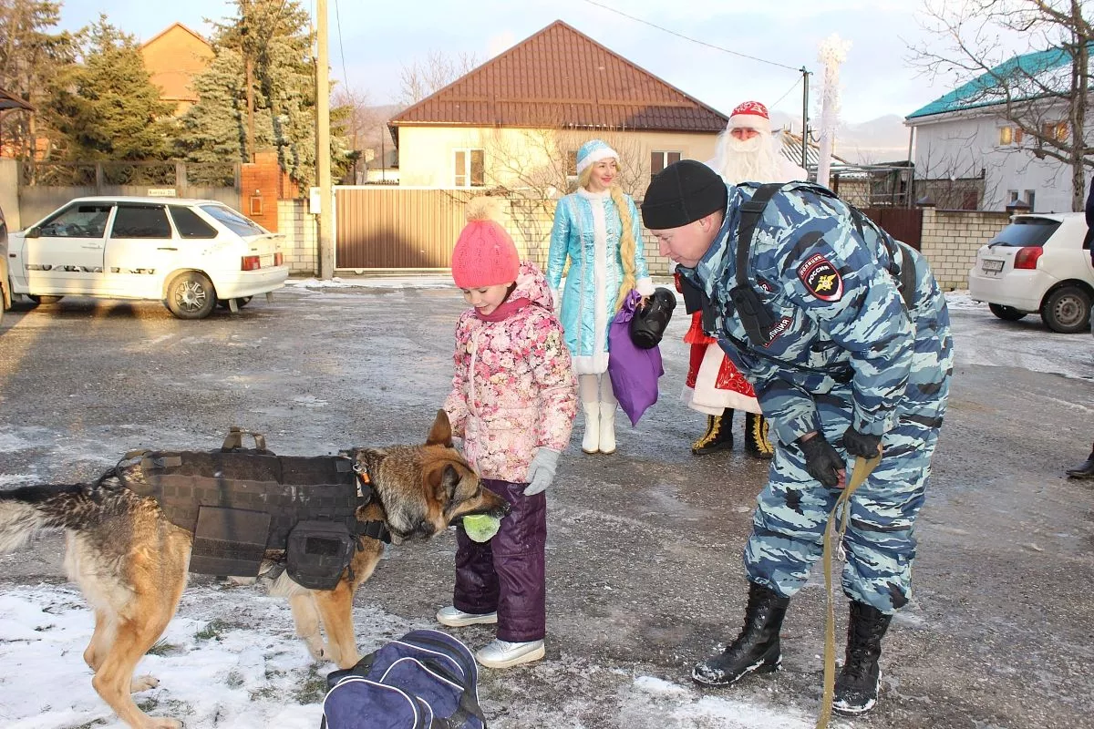 Дед Мороз поздравил ее с предстоящим новогодним праздником и познакомил со своими спутниками - полицейским и служебной собакой по кличке Калина, которая безукоризненно выполнила все команды на радость Киры и нашла для девочки новогодний подарок. По команде - «ищи», которую с восторгом произнесла сама девочка с разрешения полицейского, немецкая овчарка направилась к патрульному автомобилю. Там Киру ждал подарок от Полицейского Деда Мороза.