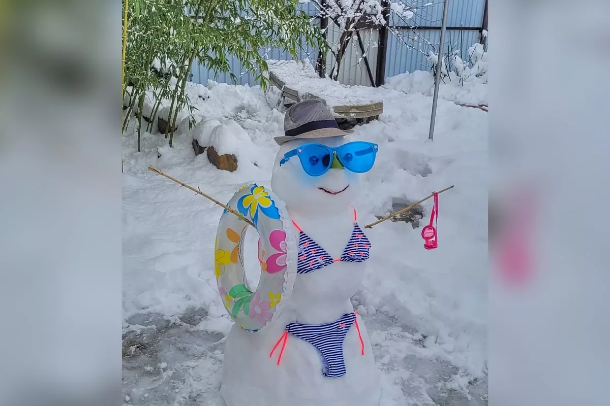 Жители Анапы нарядили снежную фигуру в купальник, дали в руки спасательный круг, а на голову надели солнцезащитные очки. По словам создательницы снеговика, такая фигура символизирует обычного отдыхающего.