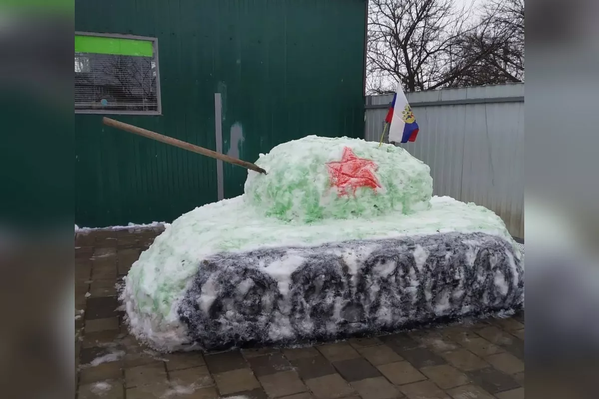 Кого только не лепят жители Кубани из снега. Это и герои мультфильмов: смешарики и русалки, и дома, и целые семьи из снеговиков. Так четыре снеговика и снежный ангел были замечены в Тимашевске на ул. Кореновской. Они будто сели передохнуть за деревянных табуретках возле стола. А умелец из Усть-Лабинска из снега соорудил танк.
