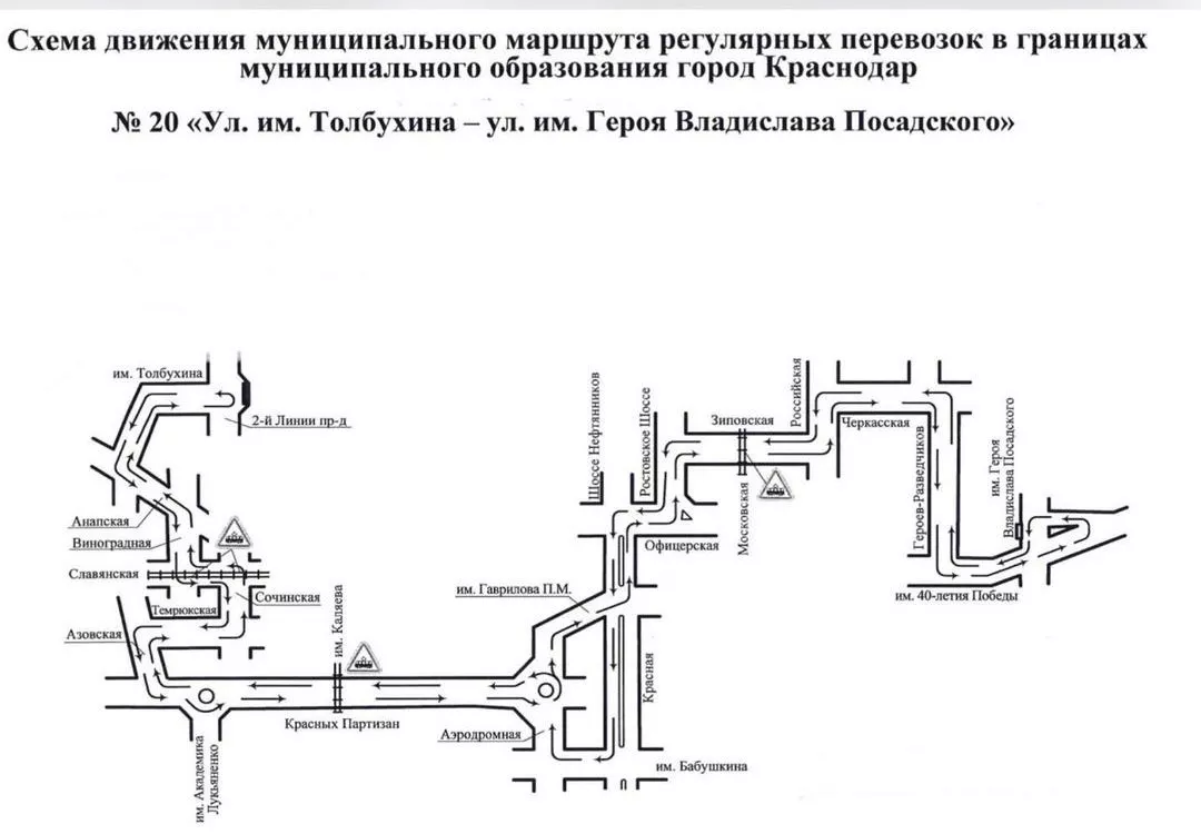 Как и раньше, движение будет начинаться от улицы им. Толбухина, но конечной остановкой вместо вокзала Краснодар-1 станет улица им. Героя Владислава Посадского.