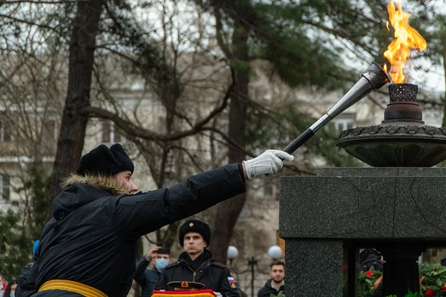 Вот и теперь в исторический день залповый выстрел с крейсера «Михаил Кутузов» возвестил о начале Всероссийской патриотической акции. На площади Героев рота почетного караула Новороссийского гарнизона провела ритуал зажжения двух факелов от Вечного огня. Вместе с матросскими бескозырками их поместили на бронетранспортеры. Боевые машины отправились к местам, где в феврале 1943 года развернулись самые ожесточенные бои за освобождение Новороссийска – на Малую Землю и в село Южная Озереевка.
