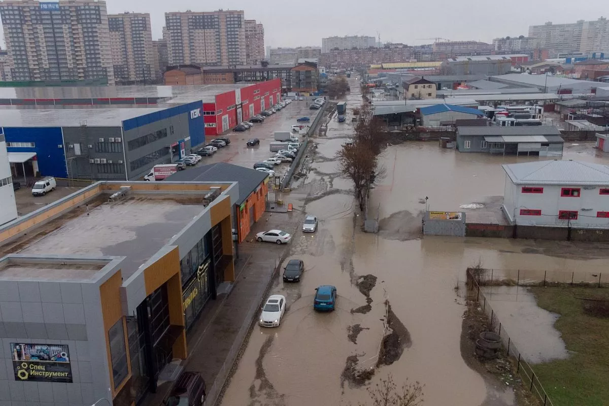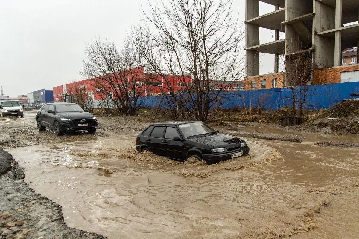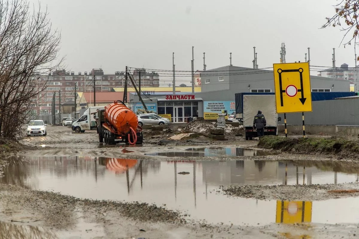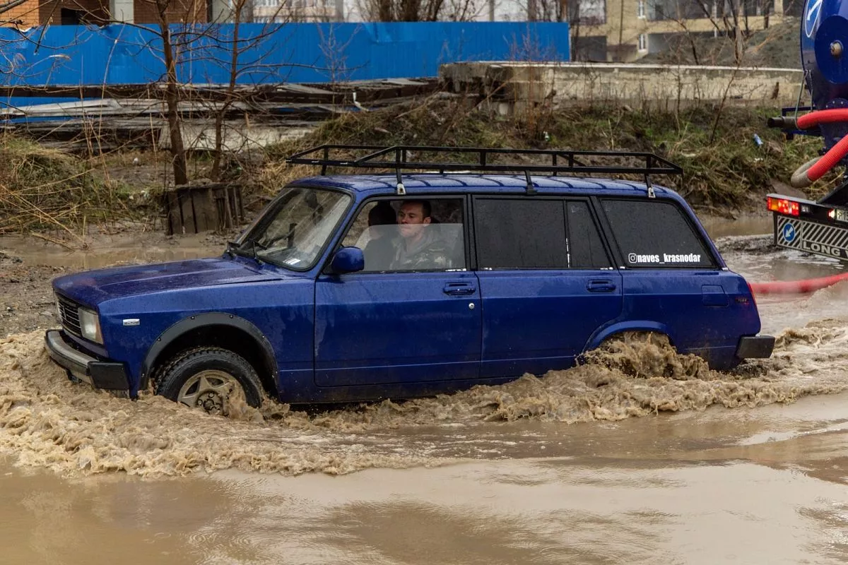 Улица Автомобильная в Краснодаре превратилась в водную ловушку для машин.