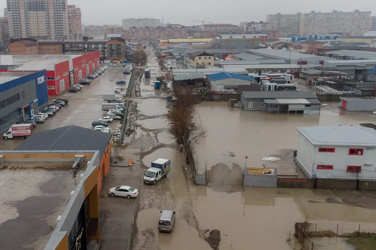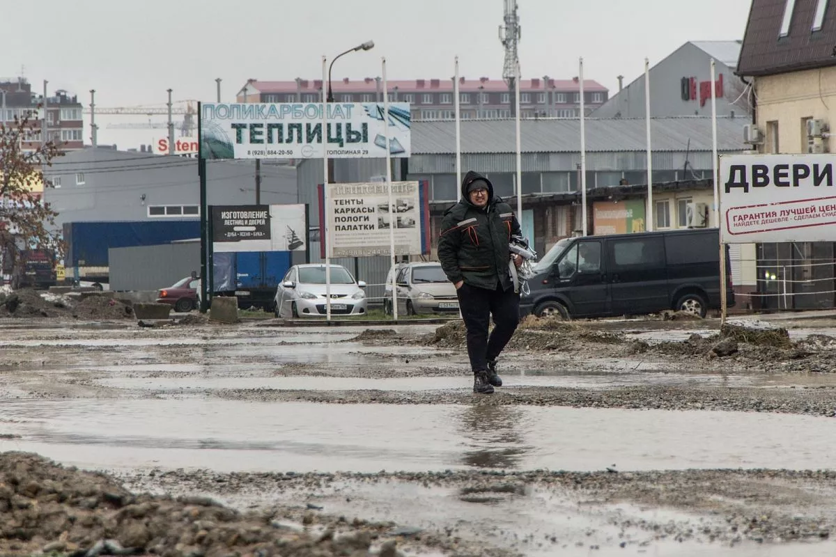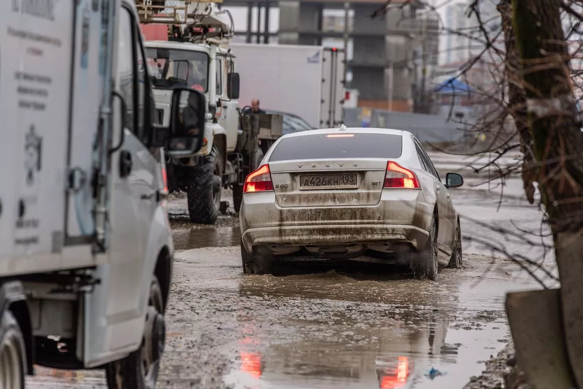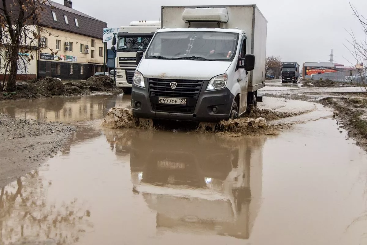 Улица Автомобильная в Краснодаре превратилась в водную ловушку для машин.