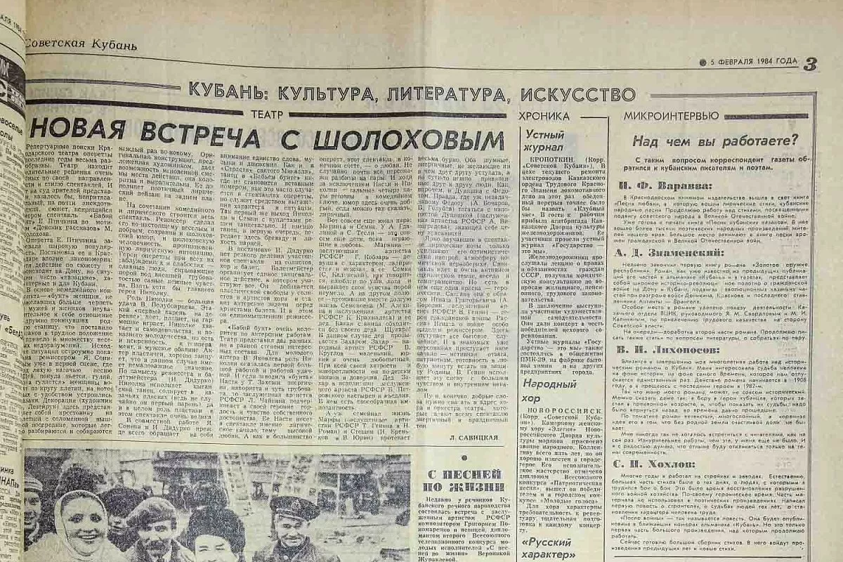 Следующая подборка для наших хроник – из газеты «Советская Кубань» за 1984 год.