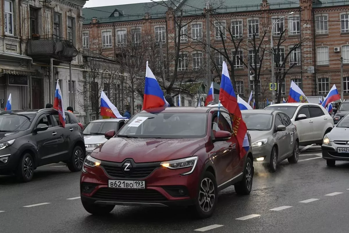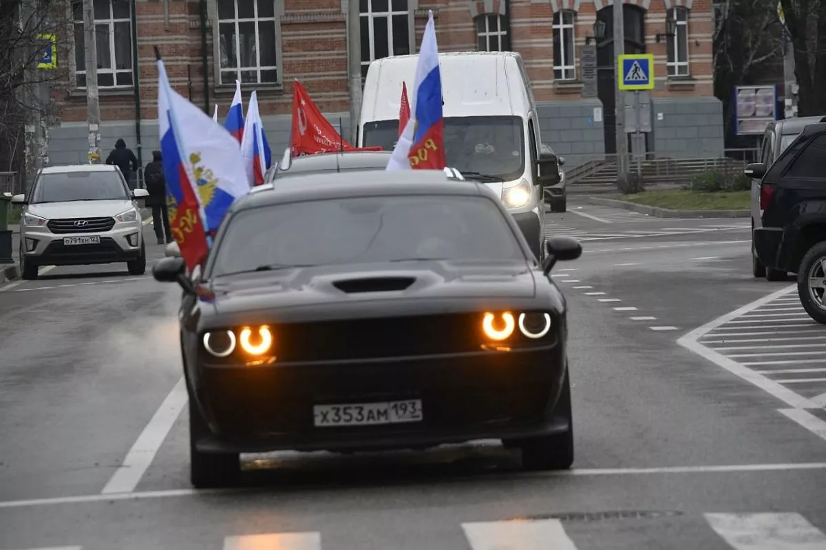 Zа Россию: по Краснодару проехала колонна сторонников Президента и Вооруженных Сил страны