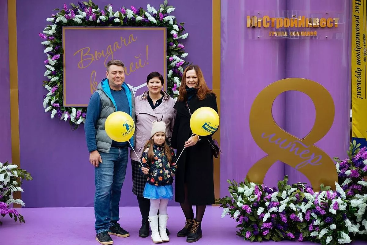 По традиции сдача дома от группы компаний «ЮгСтройИнвест» - праздник для всех. Двор 8 литера украсили шарами, для детей организовали игры и мастер классы. В праздничной обстановке новоселы знакомились с соседями, фотографировались, и, конечно, получали ключи от своих квартир.