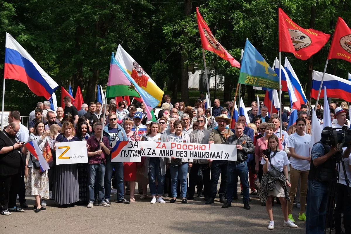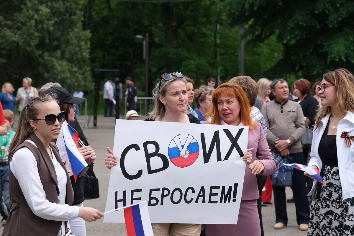 Несколько сотен человек пришли на митинг в краснодарской Чистяковской роще, чтобы выразить свою поддержку российским бойцам, воюющим на Украине.