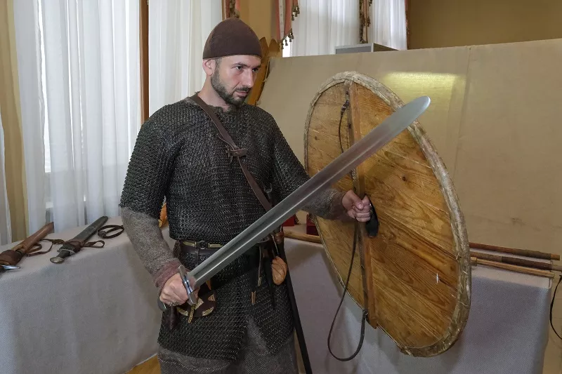 Экспонаты для выставки предоставил военно-исторический клуб «Гуллинбурсти». Как рассказал заместитель руководителя клуба Кирилл Стружкин, члены «Гуллинбурсти» также участвуют в фестивалях, мужчины учатся владеть оружием, а девушки – готовить блюда, как на Руси.