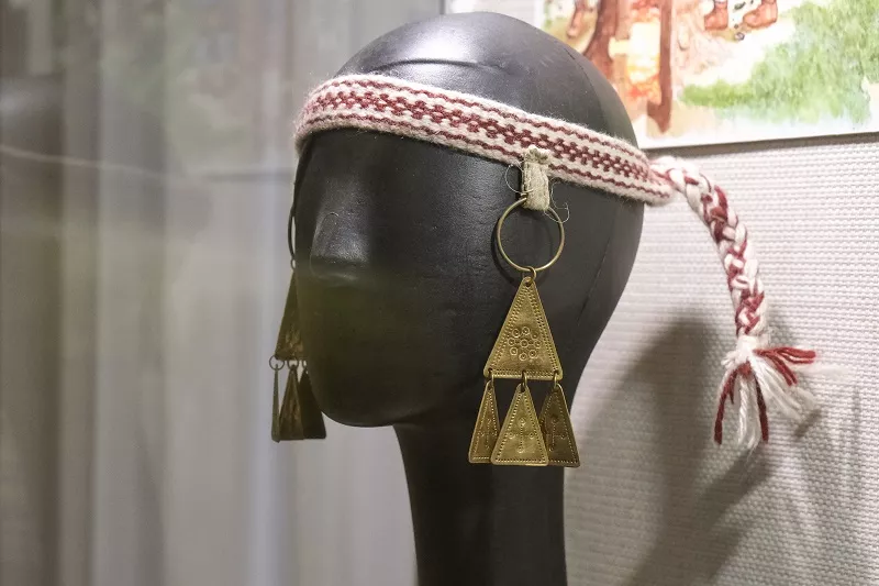 На выставке можно увидеть одежду не только простых людей, но и знатных. Их внешний образ отличали, в частности, украшения, которым посвящена целая витрина. Здесь можно увидеть перстни, медальоны, бусы и ободки с кольцами, которые носили знатные женщины. Причем на витрине есть и украшения-обереги, которые больше связаны с язычеством.