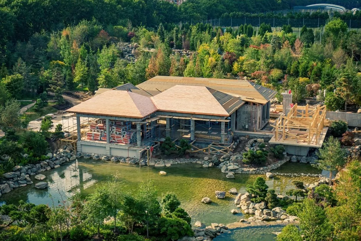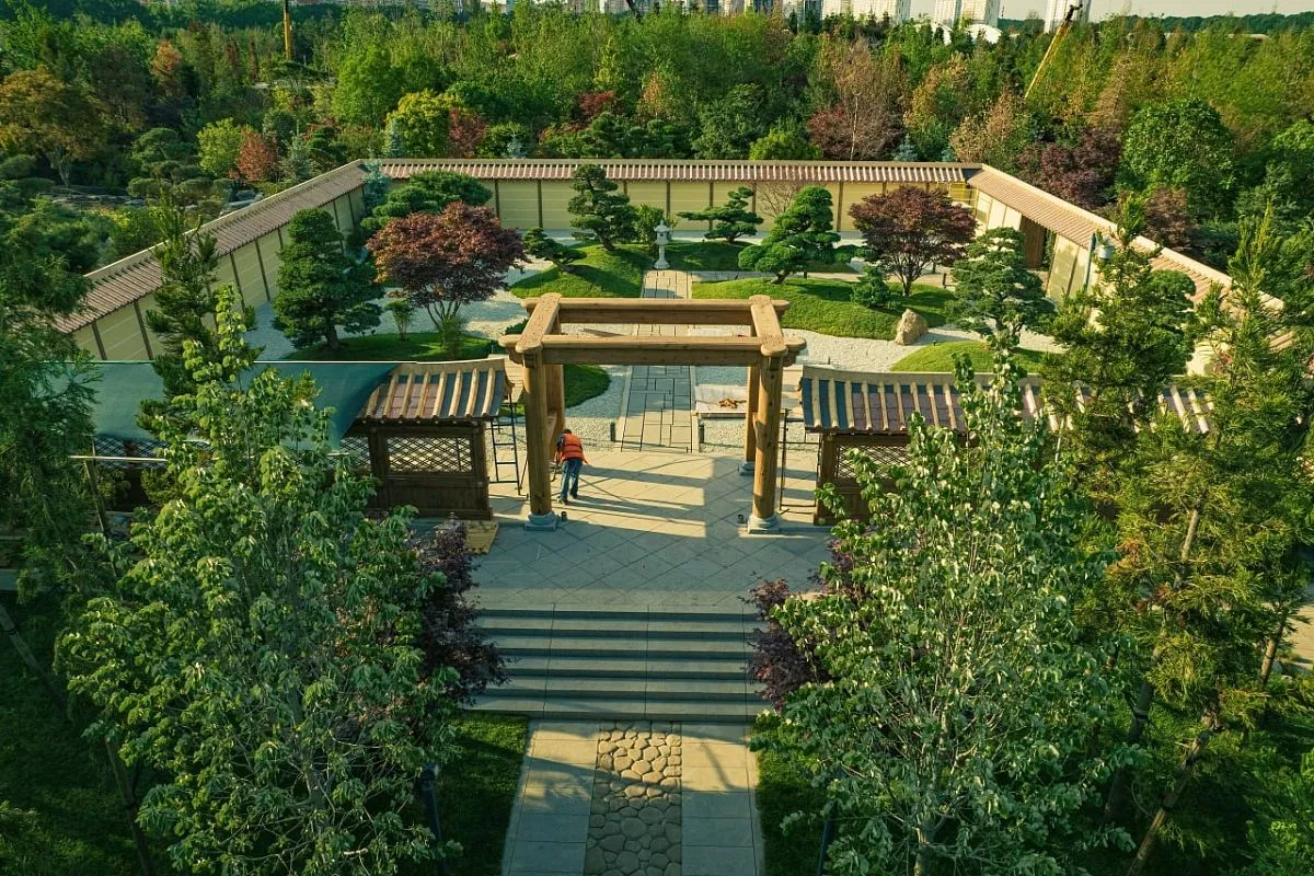 В японском саду, который станет самым большим за пределами Японии, продолжаются работы.