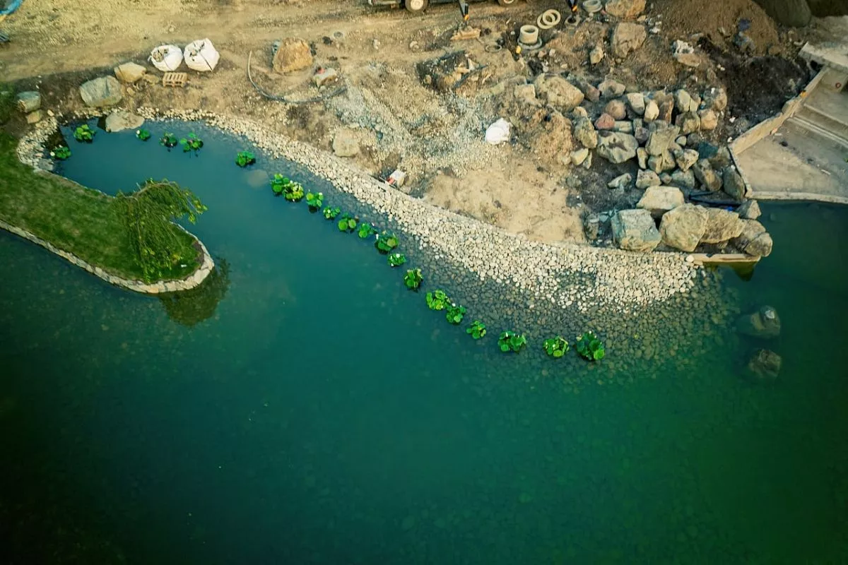 Там же строят и ресторан с видом на озеро. Подход к нему начали выкладывать плиткой. Через водопад, идущий к озеру Кагамиике, начали делать мост. В самом водоеме уже появились кувшинки.