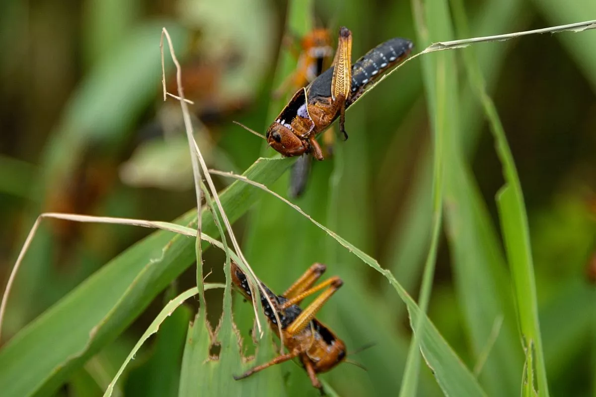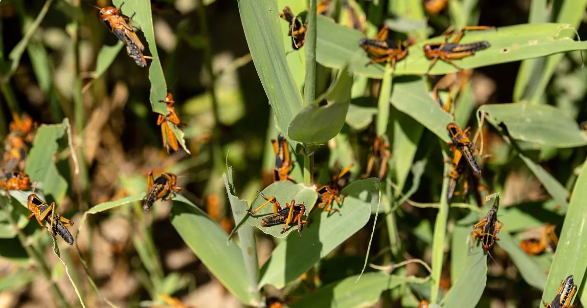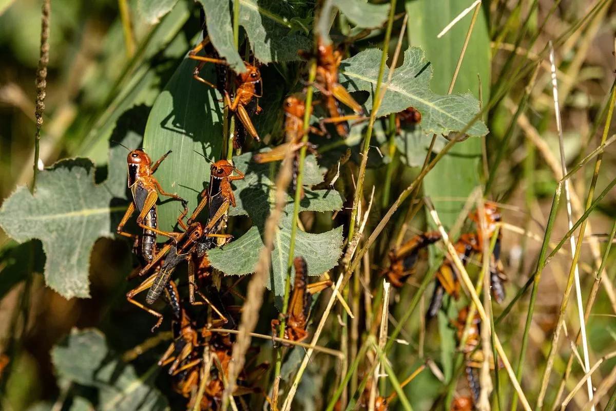 Бурный рост популяции саранчи произошел в 2016 году - она стала образовывать стаи и вышла из плавней на поля.
