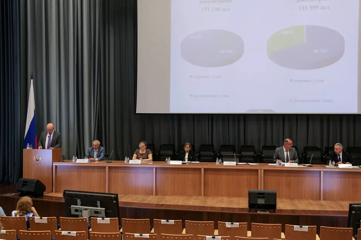 В своем докладе председатель Краснодарского краевого суда Алексей Шипилов озвучил, что судами края, включая мировых, в отчетном периоде рассмотрено более 733 тысяч дел и материалов. Из них 468 754 - гражданские дела и 10 137 - уголовные.