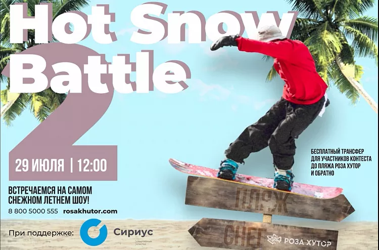 Открытие площадки Hot Snow Battle-2 на черноморском пляже «Роза Хутор» намечено на 12.00, сообщает пресс-служба курорта.